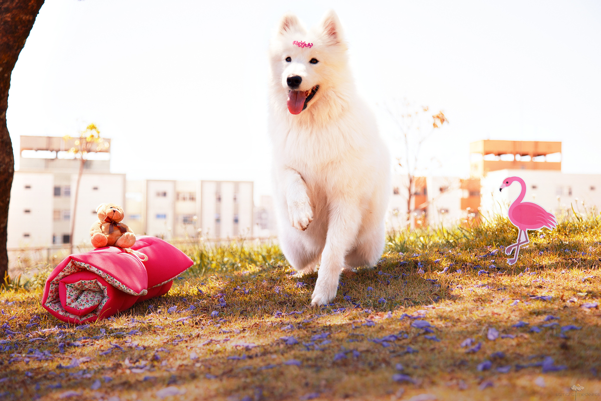 Gente, o ensaio de hoje está a coisa mais linda do universo. A Sanny é uma cachorrinha Samoieda suuuuuper simpática e educada! Ela participa de vários encontros de cães, de vários eventos que acontecem em petshops e creches para cães por toda a cidade. Ela se dá bem com todo mundo, seja humano, seja outros animais. Adora brincar, adora se sujar, mas mantém essa cara de lady deliciosa que ela tem!